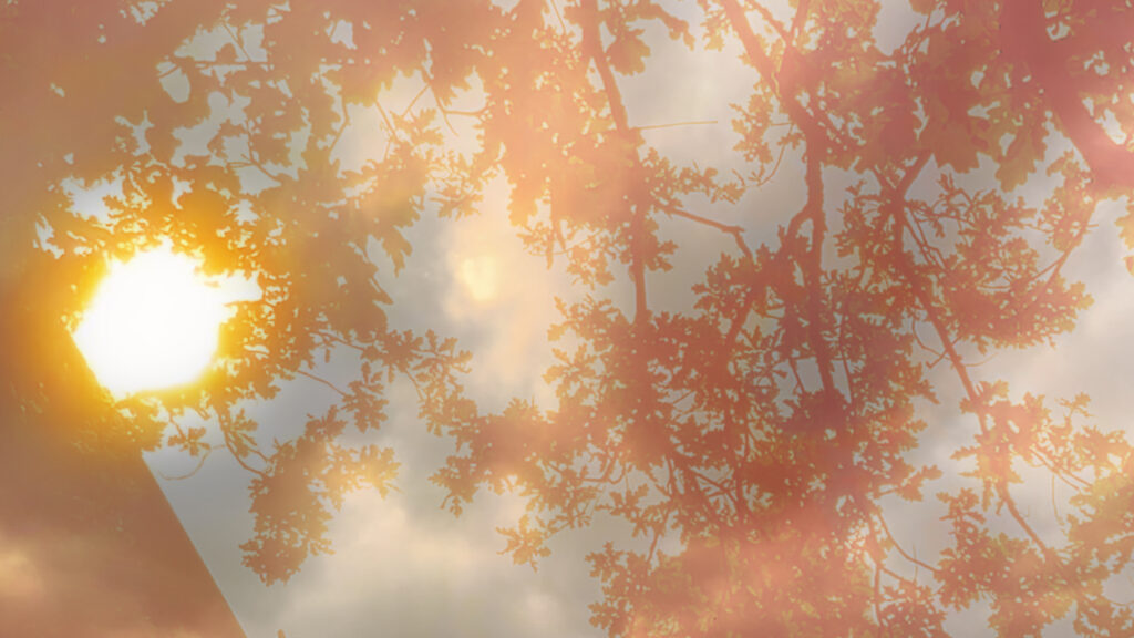 le soleil derrière les arbres … et les nuages (8 mn 50 s)